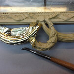 - La première étape consiste à prendre l’empreinte de l’ornement à l'aide de silicone et d'estamper de la craie mélangée à de la colle animale dans l'empreinte. Cela permet, de reconstituer l’ornement manquant ou abimé.